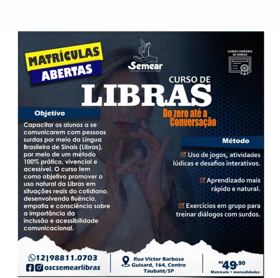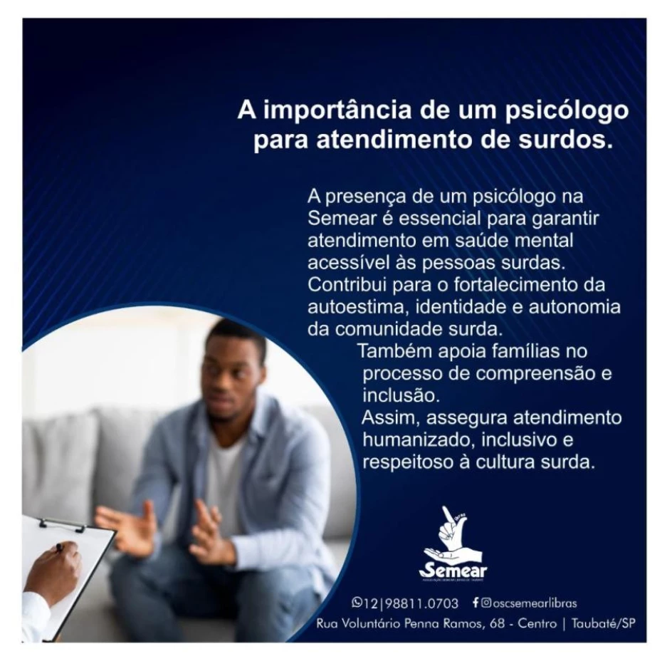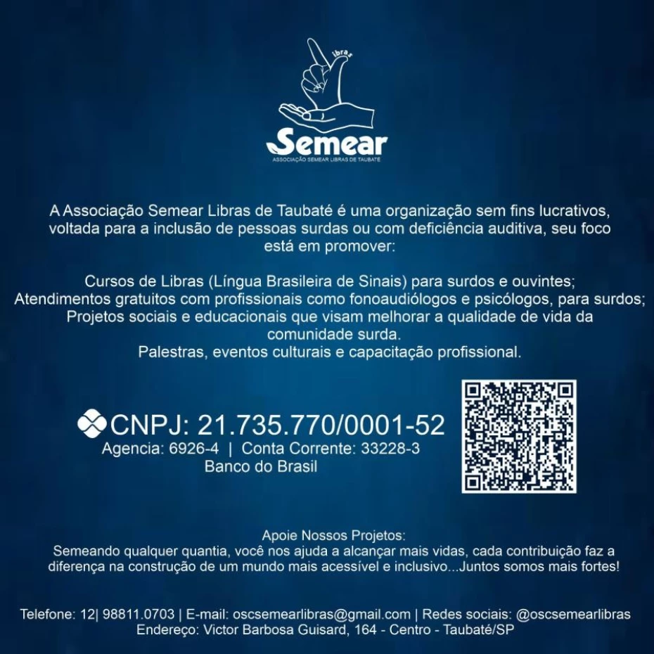 A Associação Semear Libras de Taubaté, é uma instituição sem fins lucrativos dedicada à inclusão, acessibilidade e valorização da comunidade surda.